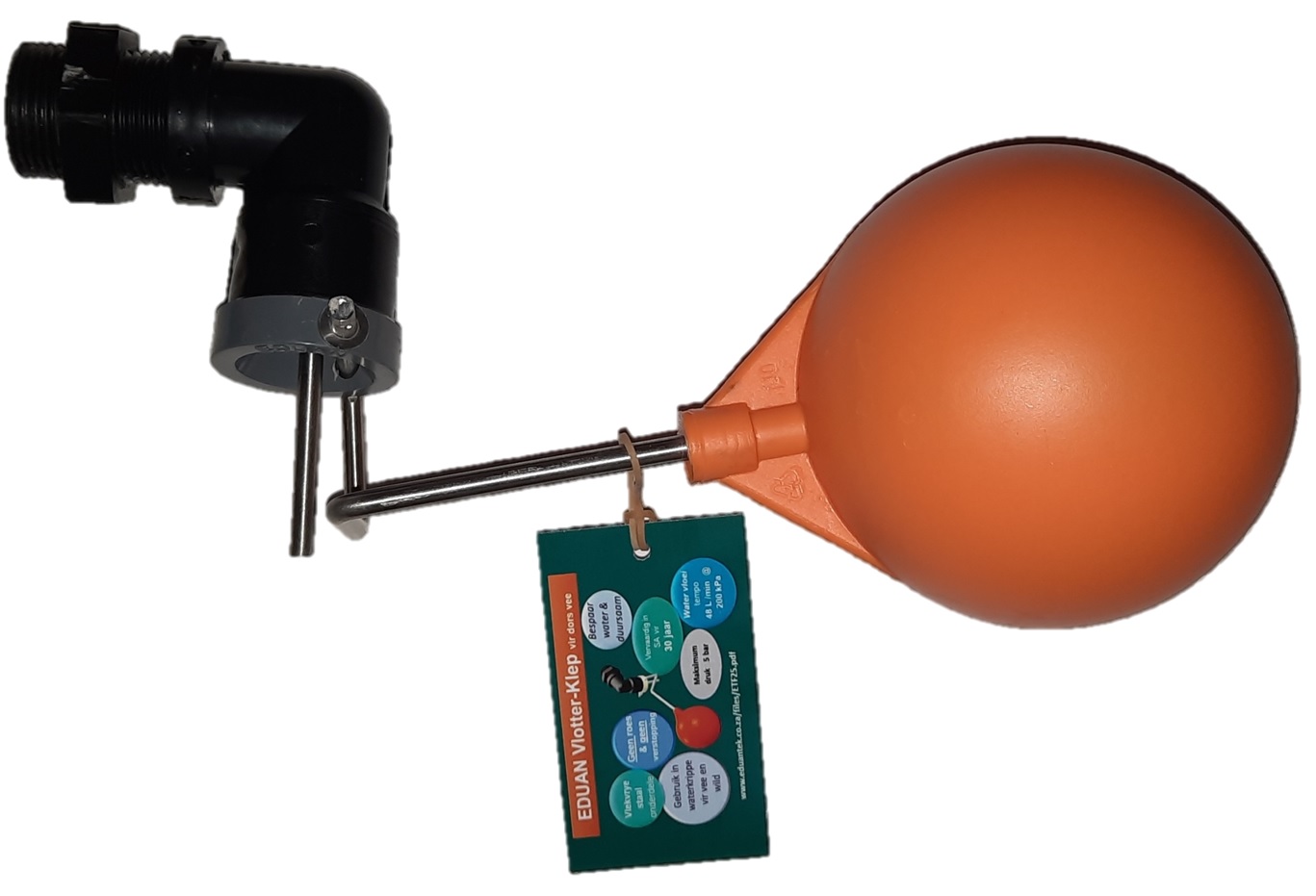 • Used in water troughs for game and livestock to regulate water level• Flow rate 30 l/min @ 100kPa, 83 l/min @ 500kPa• Maximum pressure 500kPa.• Minimum pressure 100kPa